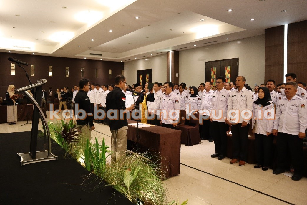Turut hadir dalam acara ini Bupati Bandung, Dadang Supriatna, S,IP., M.Si dan Sekretaris KPU Provinsi Jawa Barat Achmad Syaifudin Rahadian, SE.,M.Si yang memberikan sambutan dan arahannya serta menyampaikan ucapan selamat kepada PPK terlantik.