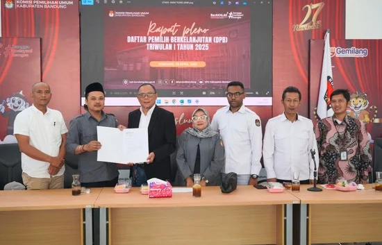 Bandung, kab-bandung.kpu.go.id – KPU Kabupaten Bandung menetapkan Daftar Pemilih Berkelanjutan (DPB) sebanyak 2.665.477 yang terdiri dari 1.349.355 pemilih laki-laki dan 1.316.122 pemilih perempuan melalui Rapat Pleno yang diselenggarakan di Aula Kantor KPU Kabupaten Bandung pada Senin (28/4/2025). Rapat pleno dibuka secara langsung oleh Ketua KPU Kabupaten Bandung Syam Zamiat Nursyamsi dengan didampingi oleh jajaran Anggota beserta Sekretaris KPU Kabupaten Bandung. Hadir juga Anggota Bawaslu Kabupaten Bandung yang turut mengikuti rapat pleno.