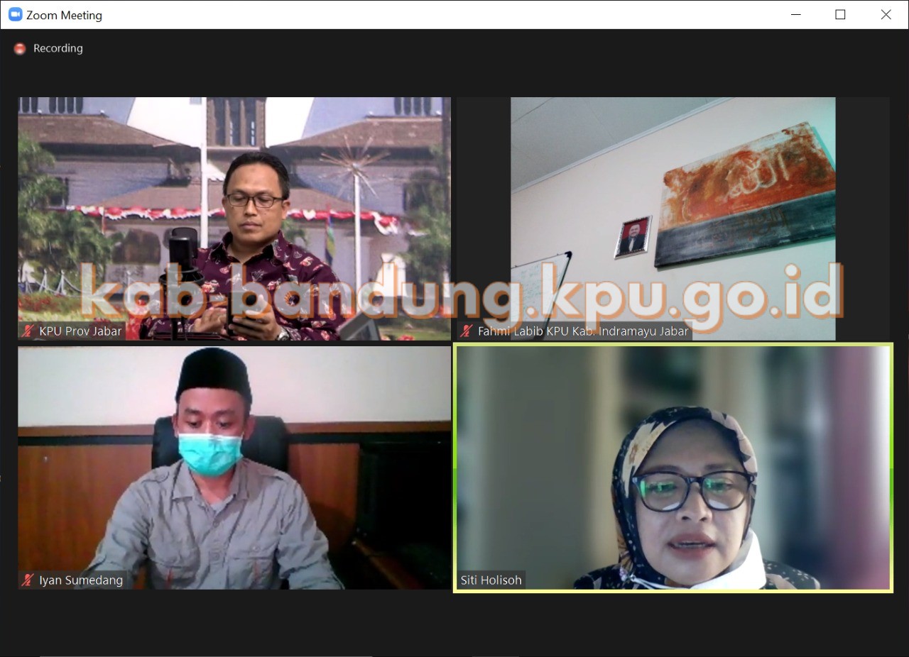 Siti menyampaikan pula terkait pelaksanaan Penetapan Calon Terpilih, dimana masih terdapat beberapa permasalahan, diantaranya mengenai penyampaian formulir model C.Hasil-KWK melalui aplikasi Sirekap yang belum terlaksana sepenuhnya dikarenakan Kabupaten Bandung memiliki blank spot sangat signifikan pada pelaksanan Pemilihan Tahun 2020 yang lalu. Kebijakan KPU RI disampaikan di akhir menjelang pelaksanaan rekapitulasi, menyebabkan kurangnya persiapan yang dilakukan oleh KPU Kabupaten/Kota. Terakhir, Siti mengatakan untuk ke depannya diharapkan ada persamaan persepsi untuk beberapa regulasi antara pemangku kepentingan terkait penanggulangan bagi pasien Covid-19, termasuk di dalamnya penanganan secara khusus pagi penderita agar tidak memunculkan permasalahan di lapangan.
