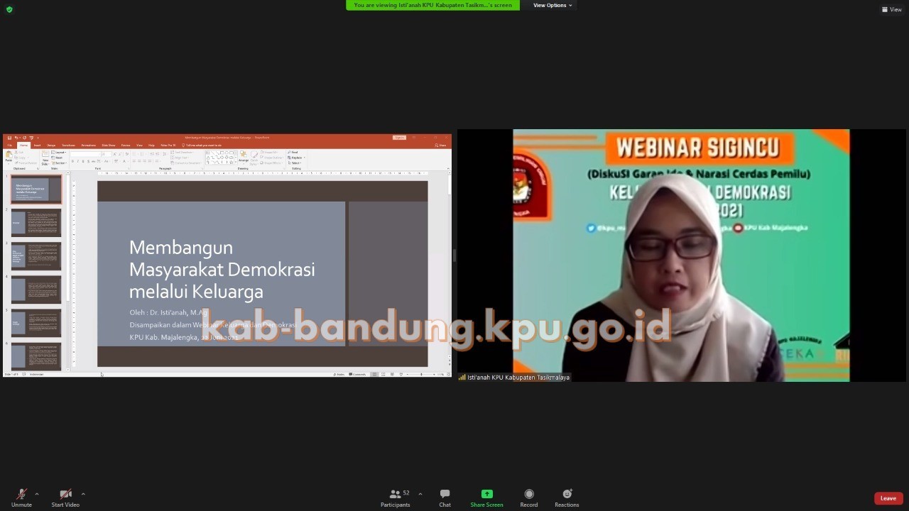 Bandung, kab-bandung.kpu.go.id – Sejatinya jika berbicara demokrasi pasti identik dengan Pemilu, Pemilihan hingga Pemilihan Kepala Desa (Pilkades), padahal demokrasi secara luas dapat diterapkan dalam kehidupan sehari-hari, lingkungan masyarakat, sampai dengan keluarga yang merupakan unit terkecil dari masyarakat, terang Cecep Jamaksari, Anggota KPU Kabupaten Majalengka, selaku salah satu naramber pada acara webinar SiGincu yang diselenggarakan oleh KPU Kabupaten Majalengka dengan tema Demokrasi dan Keluarga, Selasa (22/06/2021).