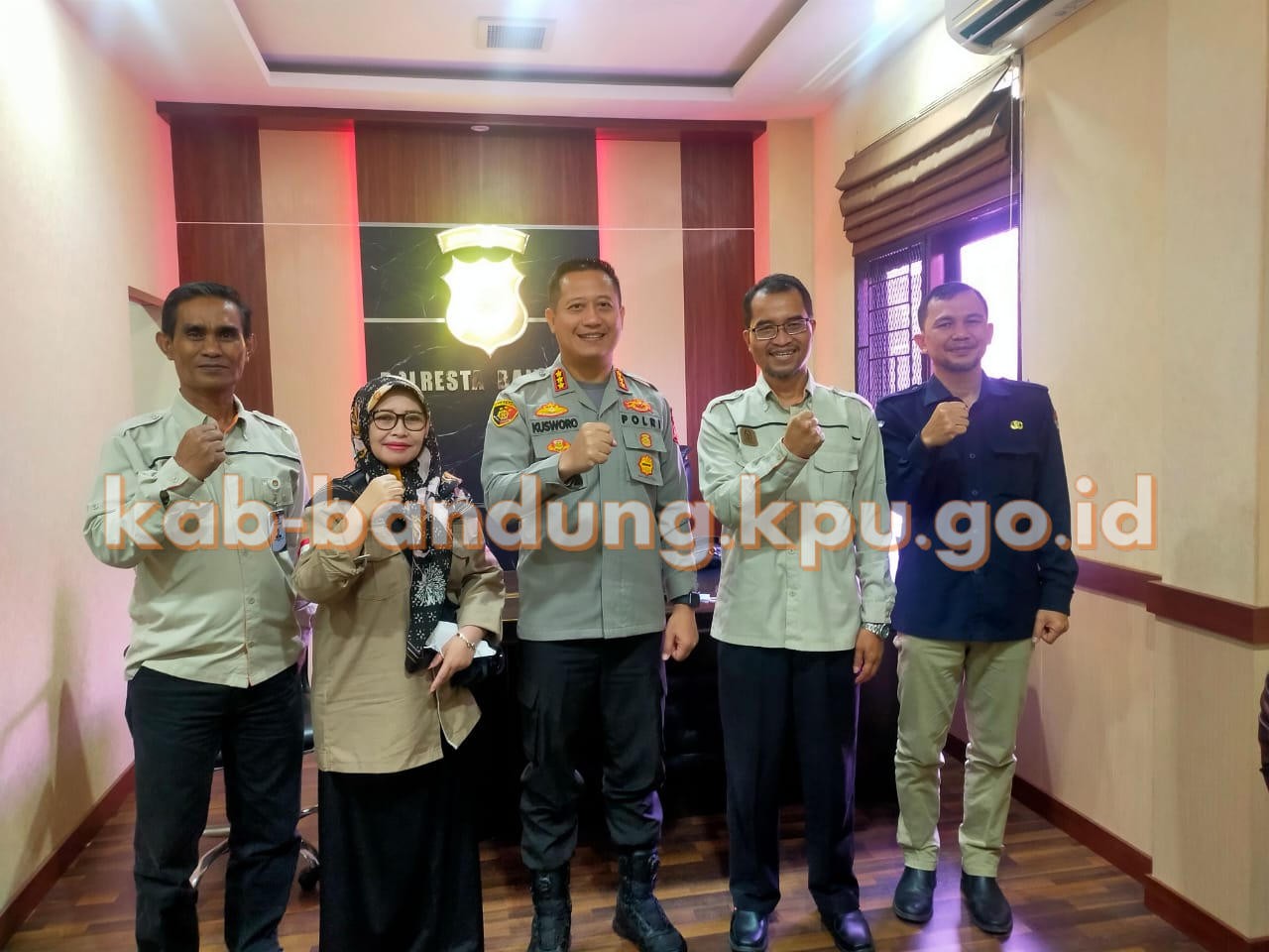 Kombes Pol Kusworo Wibowo menerima dengan terbuka kehadiran KPU Kabupaten Bandung. Pada kesempatan baik ini Kusworo menyampaikan apresiasinya atas koordinasi yang dilakukan KPU Kabupaten Bandung. Polresta Bandung tentu saja siap bekerja keras, menjaga alur tertib dan aman dalam penyelenggaraan Pemilu maupun Pemilihan nanti. Penempatan personil di KPU, Bawaslu akan kami petakan sesuai kebutuhan. Personil dari Porlesta Bandung pun akan dibekali dengan buku saku digital yang menjadi acuan, dasar serta batasan-batasan apa saja yang dapat kami lakukan untuk mendukung penyelenggaraan Pemilu.