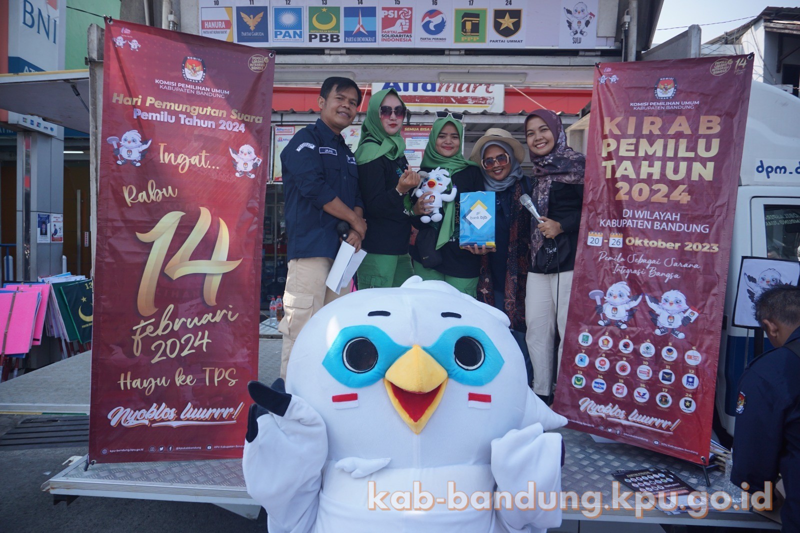 Bandung, kab-bandung.kpu.go.id – Memasuki hari ketiga pelaksanaan Kirab Pemilu di Kabupaten Bandung, pada Minggu (22/10/2023) KPU Kabupaten Bandung menyelenggarakan Kegiatan Kirab Pemilu Tahun 2024 di wilayah Daerah Pemilihan (Dapil) 2, dan 5 bertempat di The Matic Majalaya, dengan menyasar warga masyarakat di tempat keramaian, kegiatan sosialisasi juga melibatkan seluruh PPK dan PPS yang berada di Dapil tersebut.