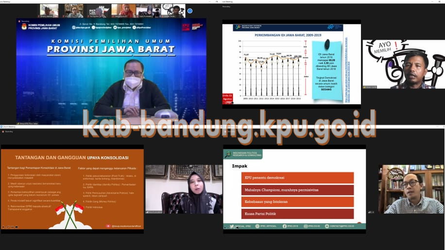 Bandung, kab-bandung.kpu.go.id – KPU memiliki beberapa agenda kegiatan pasca penyelenggaraan Pemilu dan Pemilihan. Salah satu agenda tersebut adalah program sosialisasi dan pendidikan pemilih berkelanjutan yang dilaksanakan oleh seluruh KPU di Indonesia, tutur Rifqi Ali Mubarok, Ketua KPU Provinsi Jawa Barat, dalam sambutannya pada pembukaan acara webinar Kursus Demokrasi bertema Pemantapan Konsolidasi di Jawa Barat Jelang Penyelenggaraan Pemilu Serentak Tahun 2024, Senin (12/7/2021). Acara ini terselenggara berkat kerja sama antara Second House dengan KPU Provinsi Jawa Barat.