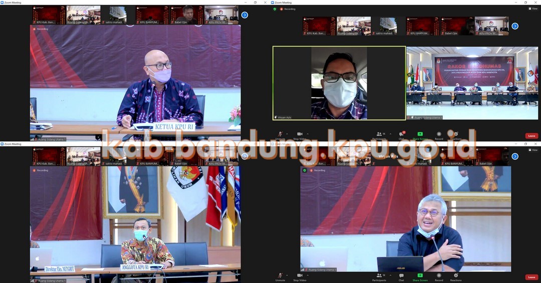 Bandung, kab-bandung.kpu.go.id – KPU Republik Indonesia (RI), dalam rangka meningkatkan kelancaran arus informasi antar satuan kerja dan kemampuan menghimpun, mengelola, menyalurkan informasi serta melaksanakan koordinasi dengan instansi/lembaga terkait dalam rangka mempersiapkan Pemilu dan Pemilihan Tahun 2024, menyelenggarakan rapat koordinasi secara daring pada Selasa, 4 Mei 2021. Rapat koordinasi diikuti oleh KPU Provinsi dan KPU Kabupaten/Kota se-Indonesia. Pembicara pada acara ini terdiri dari: (1) I Dewa Kade Wiarsa Raka Sandi, Anggota KPU RI Divisi Sosialisasi dan Pendidikan Pemilih; (2) Sigit Joyowardono, Plt. Kepala Biro Partisipasi dan Hubungan Masyarakat; (3) Bambang Gunawan, Plt. Direktur Tata Kelola dan Kemitraan Komunikasi Publik Kementerian Komunikasi dan Informatika; (4) Ferry Kurnia Rizkiyansyah, Direktur Eksekutif Network for Democracy and Electoral Integrity (NETGRIT); dan (5) Endah, TVRI Pusat.