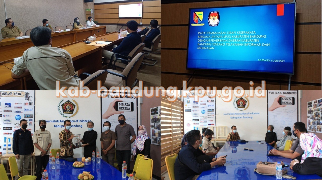 Di hari yang sama KPU Kabupaten melakukan kordinasi bersama Persatuan Wartawan Indonesia (PWI) Kabupaten Bandung dan diterima langsung oleh Ketua, Rahmat Sudarmaji berserta jajaran pengurus. Media/pers dalam kegiatan kehumasan ini tentu mempunyai peran yang penting. Media/pers sangat membantu KPU dalam sisi penyebaran informasi kepada pemilih. Tentu saja kami ingin informasi yang sampai itu adalah yang benar, sehat dan bukan hoaks, terang Ketua KPU Kabupaten Bandung, Agus Baroya.