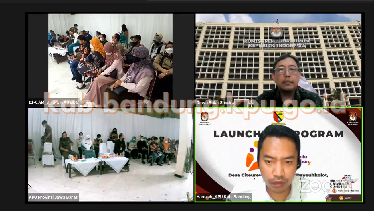 Dayeuhkolot, kab-bandung.kpu.go.id – KPU Provinsi Jawa Barat dan Kabupaten Bandung menggelar kegiatan Launching Program Desa Peduli Pemilu dan Pemilihan (DP3) pada Kamis (21/10/2021) di Aula Balai Desa Citeureup. Desa Citeurep, Kecamatan Dayeuhkolot, Kabupaten Bandung diresmikan sebagai Pilot Project Program DP3 dengan kategori daerah rawan bencana alam. Kegiatan ini dilaksanakan secara daring dan dilanjutkan dengan pembekalan bagi kader DP3 secara luring.