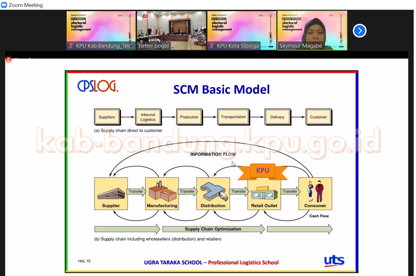 Bandung, kab-bandung.kpu.go.id – KPU Kabupaten Bandung mengikuti In House Training (IHT) dan webinar Electoral Logistic Management yang diselenggarakan oleh KPU Kabupaten Bogor. Webinar ini diadakan pada Jumat (17/12/2021), secara daring dan disiarkan langsung di chanel YouTube KPU Kabupaten Bogor. Tema ini diangkat sehubungan karena permasalahan logistik sering muncul dalam proses pelaksanaan Pemilu dan Pemilihan. Menurut Ketua KPU Kabupaten Bogor, Ummi Wahyuni, hal tersebut menjadi tantangan tersendiri bagi KPU sebagai penyelenggara Pemilu. Sampai saat ini KPU terus berupaya melakukan perbaikan dan peningkatan kemampuan dalam manajemen logistik. Ketersediaan gudang juga menjadi permasalahan bersama yang dialami tidak hanya oleh KPU Kabupaten Bogor, melainkan KPU Kabupaten/Kota lainnya.