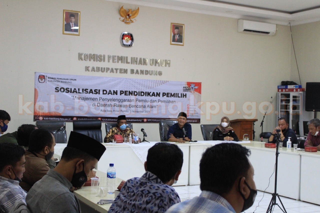 Kaitannya dengan mitigasi bencana dalam pemilu dan pemilihan, KPU Kabupaten Bandung mengundang Dudi Andre Setiawan, selaku Anggota Patroli Sungai Citarum. Dudi mengulas dengan cukup komprehensif perihal mitigasi bencana. Mitigasi menurut Undang-Undang Nomor 24 Tahun 2007 merupakan serangkaian upaya untuk mengurangi risiko bencana, baik fisik, penyadaran dan peningkatan kapasitas dalam menghadapi bencana. Manfaat yang didapatkan oleh penyelenggara pemilu dengan adanya mitigasi, diantaranya dapat mengurangi dampak yang ditimbulkan oleh bencana, penyelenggara pemilu dapat memberikan pengetahuan lebih kepada masyarakat/pemilih, serta dapat mengidentifikasi dan mengenalkan terhadap sumber bahaya atau ancaman bencana. Sebagai penyelenggara pemilu, KPU sedikitnya harus memahami bagaimana mitigasi bencana, setidaknya dapat menyediakan tempat pemilihan yang aman juga sehat bagi pemilih agar tercipta sirkulasi udara yang baik. Pada hakikatnya pemilih adalah penguasa sungguhnya, karena di ujung jarinya terdapat sebuah keputusan yang baik dan yang jelek dari sesuatu, tergantung dari situasi dan kondisi yang dialami saat dalam proses pemilu/pemilihan.