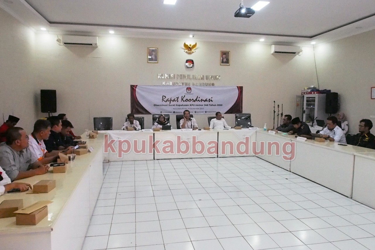 Bandung, kab-bandung.kpu.go.id – KPU Kabupaten Bandung kembali mengadakan rapat koordinasi dengan partai politik tingkat Kabupaten Bandung pada Kamis (19/9/22/) seiring dengan terbitnya surat keputusan KPU no 346 Tahun 2022 tentang perubahan ketiga atas keputusan KPU nomor 260 Tahun 2022 tentang pedoman teknis bagi KPU, KPU Provinsi dan KPU Kabupaten/Kota dalam pelaksanaan Pendaftaran, Verifikasi, dan Penetapan Partai Politik Peserta Pemilu Anggota DDPRdan DPRD. Kegiatan ini merupakan salah satu bentuk komunikasi yang dijalin oleh KPU dengan Partai Politik untuk terus menyamakan persepsi. Rakor dilaksanakan di Aula Bale Piinter KPU Kabupaten Bandung dengan mengundang Liaison Officer (LO) Partai Politik, Badan Kesatuan Bangsa dan Politik Kabupaten Bandung dan , Bawaslu Kabupaten Bandung.