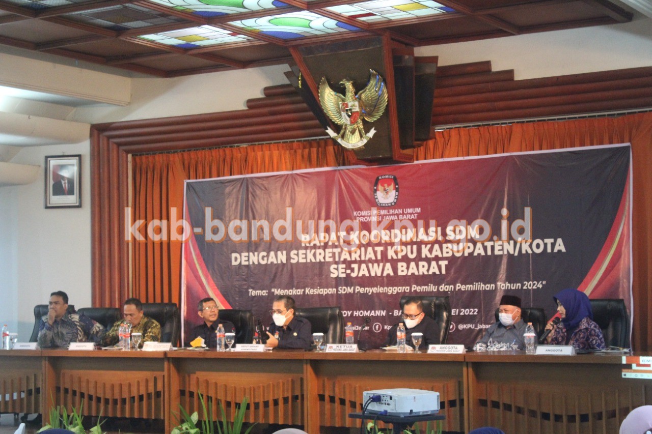 Bandung, kab-bandung.kpu.go.id – Dalam rangka menakar kesiapan Sumber Daya Manusia (SDM) menjelang penyelenggaraan Pemilu dan Pemilihan Serentak, KPU Provinsi Jawa Barat menyelenggarakan Rapat Koordinasi SDM bersama Anggota KPU Divisi Sosisalisasi, Partisipasi Masyarakat dan SDM, serta Kepala Sub Bagian Hukum dan SDM KPU Kabupaten/Kota se Jawa Barat, Selasa (24/5/2022) bertempat di Hotel Savoy Homan, Bandung.