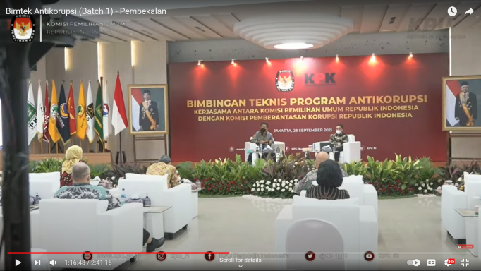 Pimpinan KPK, Nawawi Pomolango, yang bertindak sebagai keynote speakers dalam kegiatan ini, menyampaikan bahwa kedeputian pendidikan dan peran serta masyarakat merupakan kedeputian baru yang dibentuk oleh KPK seiring dengan arah strategi pemberantasan korupsi yang dijalankan KPK tahun 2019-2023. Korupsi merupakan kejahatan luar biasa yang biasa disebut dengan extraordinary crime, karena dampak buruk dari kejahatan ini betul-betul meluluhlantahkan sendi-sendi keutuhan berbangsa dan bernegara, bukan hanya merugikan keuangan negara, tetapi merusak seluruh kehidupan sosial masyarakat. Selain menyamakan persepsi mengenai apa yang dimaksud dengan kejahatan korupsi dan segala problematikanya, paling tidak kegaiatan ini dapat menjadi sarana untuk mengingatkan tentang pentingnya nilai-nilai integritas, khususnya bagi penyelenggara pemilu dalam hal ini pejabat dan pegawai di lingkungan KPU. Berbagai upaya telah dilakukan dalam pemberantasan korupsi, namun kejahatan ini tumbuh kembang karena lahir dari berbagai modus operandinya. Menyikapi situasi demikian, KPK tidak cukup hanya dengan memberikan kegiatan tindakan, tetapi juga diimbangi dengan kegiatan pencegahan korupsi. Oleh karenanya KPK menjalankan strategi pendidikan masyarakat, strategi pencegahan dan strategi penindakan, ujar Nawawi.