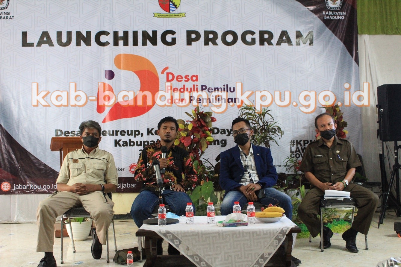 Dayeuhkolot, kab-bandung.kpu.go.id – Launching program Desa Peduli Pemilu dan Pemilihan (DP3) di Desa Citeureup, Kecamatan Dayeuhkolot, pada Kamis (21/10/2021) juga menyelenggarakan kegiatan pembekalan bagi para kader DP3. Pembekalan diisi oleh 3 (tiga) orang narasumber yang terdiri dari Anggota KPU Provinsi Jawa Barat, Idham Holik, Kabid Bakesbangpol Kabupaten Bandung, Anang Suryana, serta Anggota Bawaslu Kabupaten Bandung, Januar Solehudin. Sesi pembekalan yang dilaksanakan secara luring dengan menerapkan protokol kesehatan pencegahan penyebaran Covid-19 ini dipandu oleh Anggota KPU Kabupaten Bandung, Supriatna. Para kader DP3 yang mengikuti kegiatan ini sebanyak 25 (dua puluh lima) peserta, terdiri dari berbagai macam segmentasi dan usia yang variatif, sehingga mewakili semua unsur masyarakat Desa Citeureup.