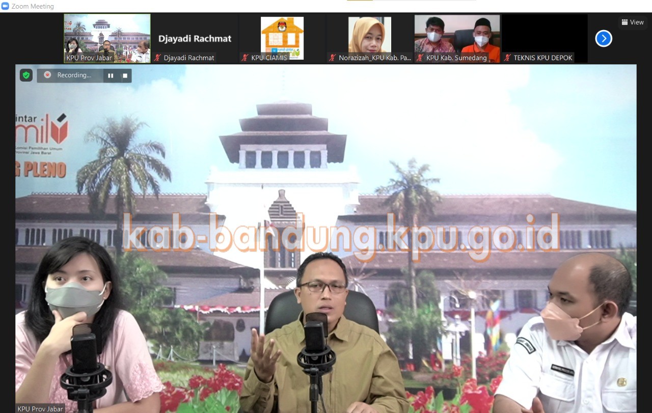 Bandung, kab-bandung.kpu.go.id – Divisi Teknis Penyelenggaran KPU Provinsi Jawa Barat kembali menyelenggarakan Diskusi lepas bersama Anggota KPU Divisi Teknis Penyelenggaraan dan Kepala Sub Bagian Teknis Penyelenggara Pemilu, Partisipasi dan Hubungan Masyarakat di 27 KPU Kabupaten/Kota se Jawa Barat, yang digelar secara daring melalui zoom meeting, pada Kamis (14/04/22). Topik yang diangkat pada diskusi lepas kali ini yakni mengenai Penataan Daerah Pemilihan (Dapil) dan Alokasi Kursi.