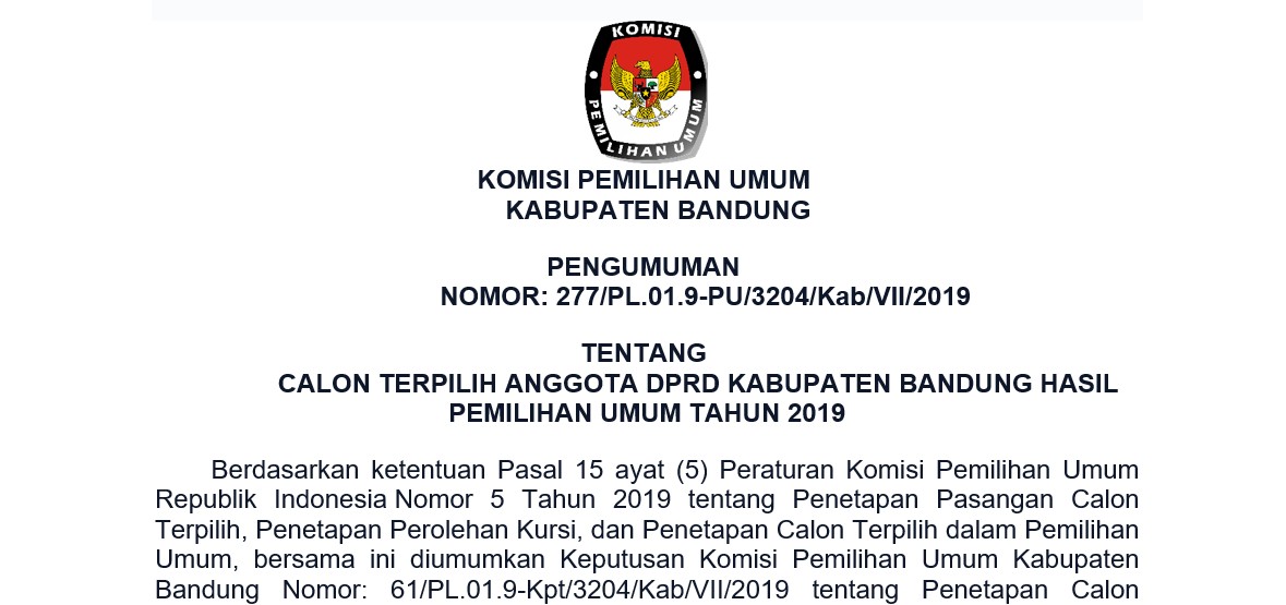 PENGUMUMAN CALON TERPILIH ANGGOTA DPRD KABUPATEN BANDUNG PEMILU 2019