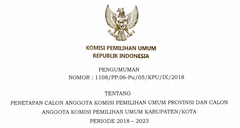 Pengumuman tentang penetapan calon anggota KPU Provinsi Periode Tahun 2018 - 2023, selengkapnya dapat DIUNDUH DI SINI.