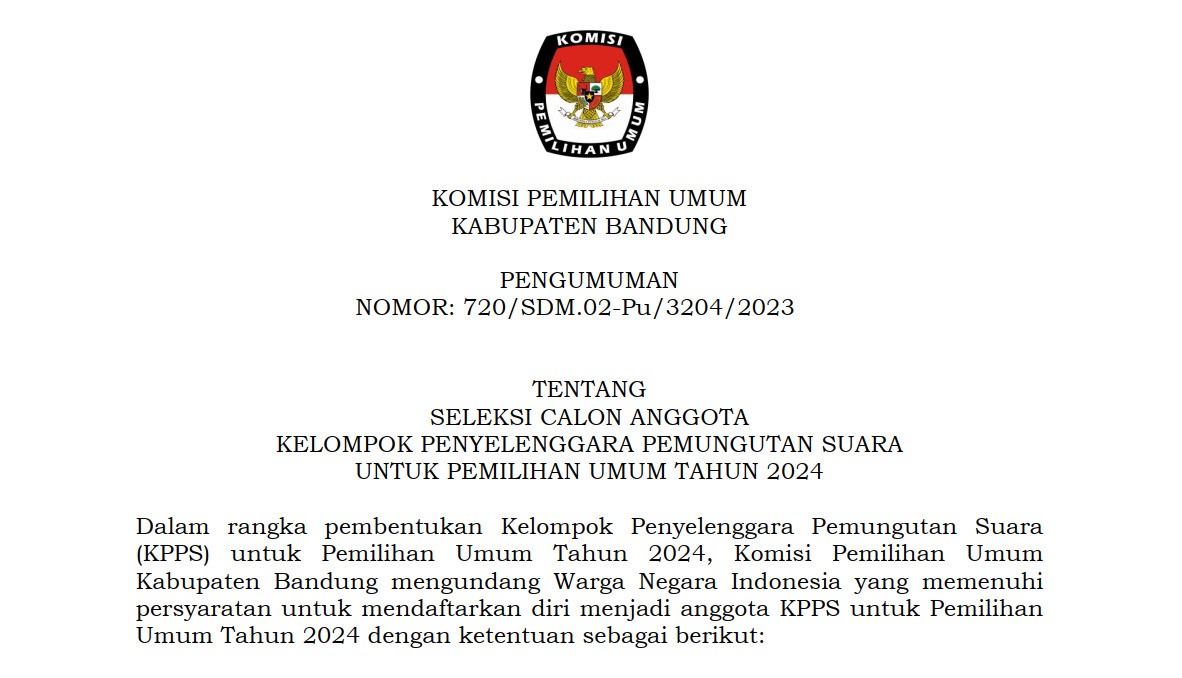 PENGUMUMAN SELEKSI CALON ANGGOTA KPPS PEMILU TAHUN 2024