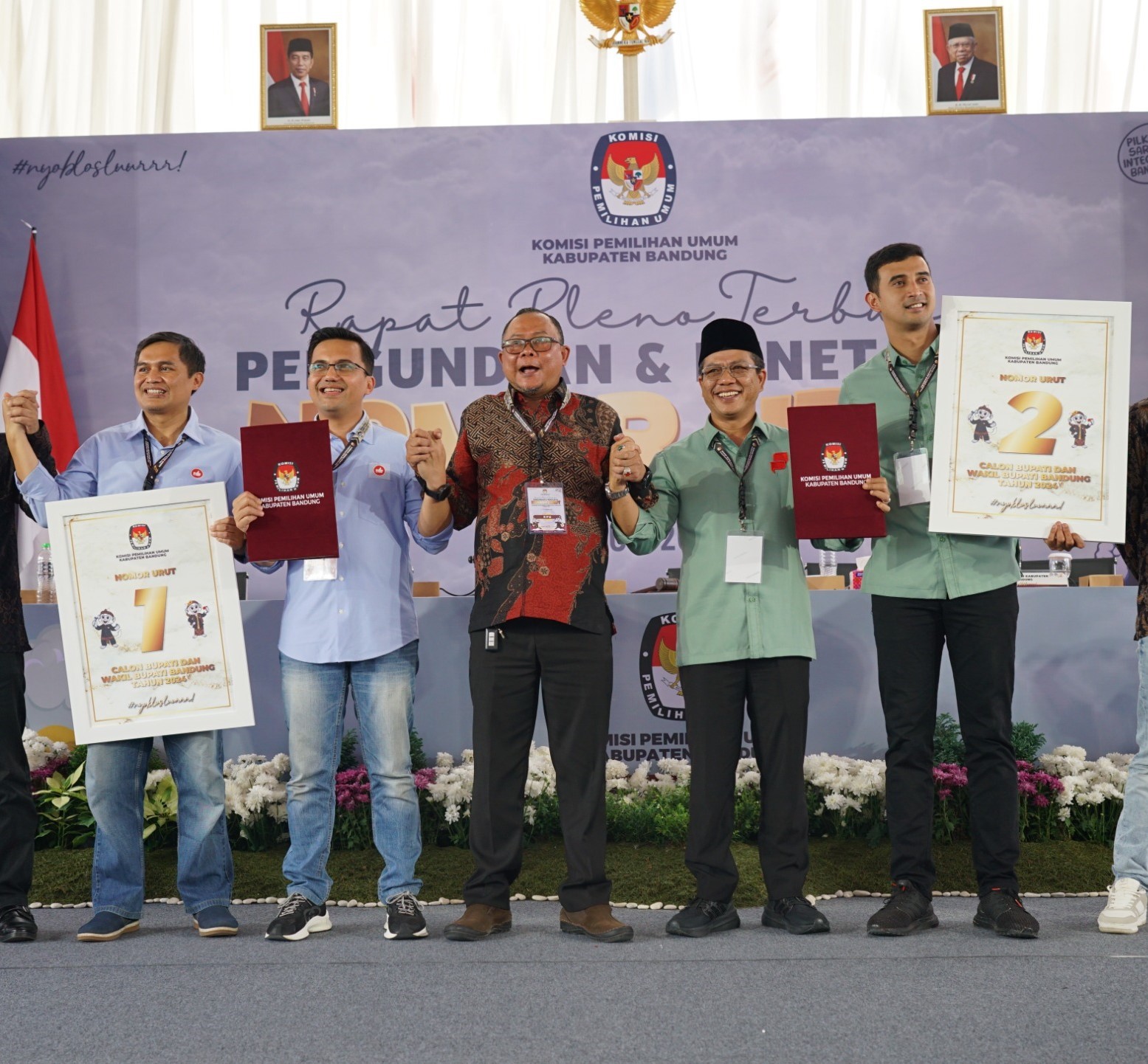 PENGUMUMAN TIM PEMENANGAN/ TIM SUKSES PEMENANGAN/ TIM KAMPANYE PEMENANGAN PASLON BUPATI DAN WAKIL BUPATI BANDUNG PADA PILKADA 2024 Selasa, 24 September 2024 07:00 406 Bersama ini, Komisi Pemilihan Umum Kabupaten Bandung mengumumkan Surat Keputusan Pasangan Calon Peserta Pemilihan Bupati dan Wakil Bupati Bandung Tahun 2024. SK Tim Pemenangan PASLON 1 DISINI SK Tim Pemenangan PASLON 2 DISINI Bagikan: Dilihat 406 Kali.