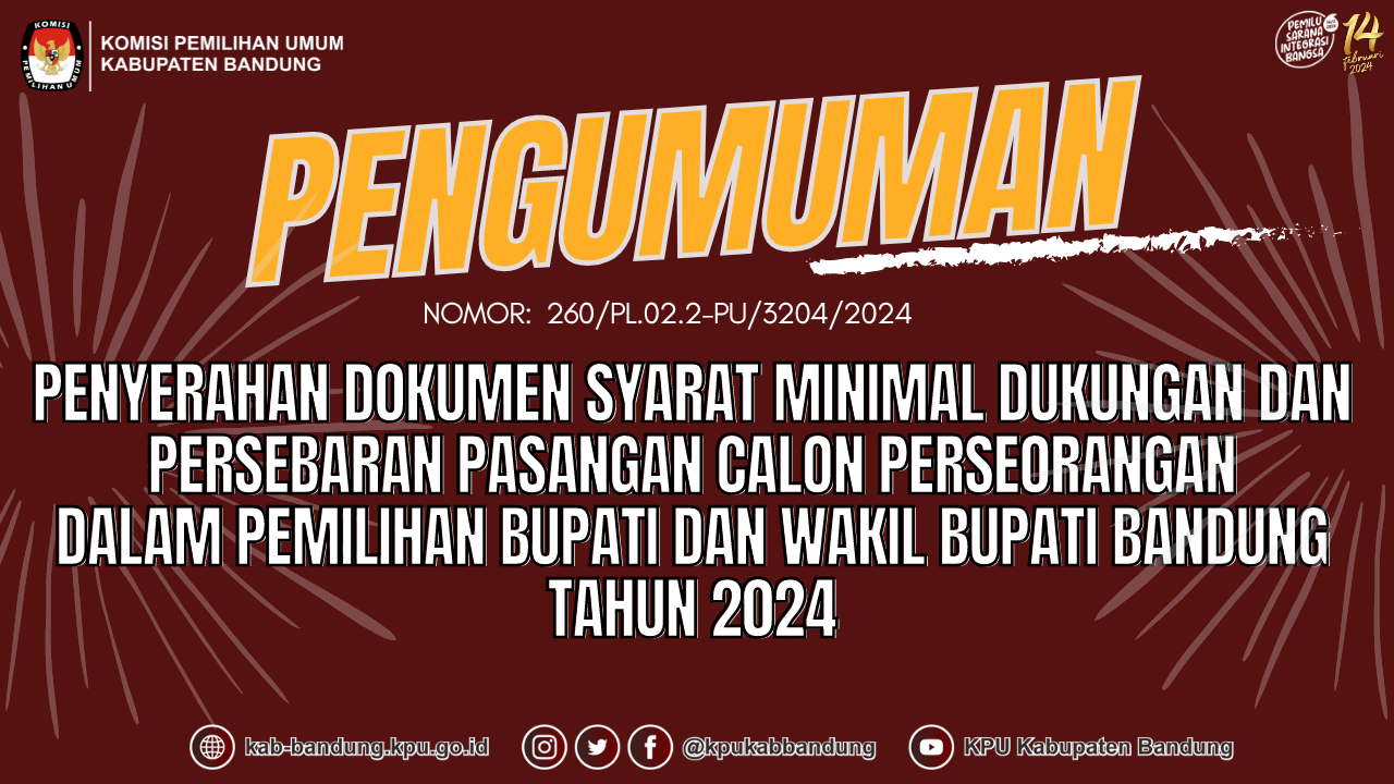 PENYERAHAN DOKUMEN SYARAT MINIMAL DUKUNGAN DAN PERSEBARAN PASANGAN CALON PERSEORANGAN DALAM PEMILIHAN BUPATI DAN WAKIL BUPATI BANDUNG TAHUN 2024
