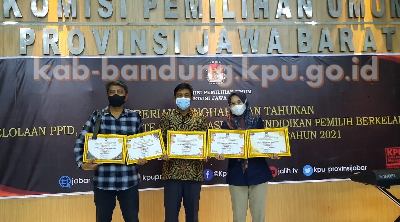 Penghargaan yang diberikan oleh KPU Provinsi Jawa Barat terdiri dari 10 (sepuluh) kategori, meliputi RPP Inovatif dan Informatif, kategori e-PPID Responsif dan Informatif, kategori Website ter-Update dan ter-Informatif, kategori Media Sosial ter-Update dan ter-Informatif, kategori Metode Sosialisasi dan Pendidikan Pemilih Berkelanjutan ter-Inovatif, serta kategori jumlah Program Kerja Sama/MoU Terbanyak. Dari kesepuluh kategori tersebut, KPU Kabupaten Bandung berhasil meraih 5 (lima) penghargaan sekaligus, yakni sebagai Juara Pertama kategori Website ter-Informatif, Juara Kedua kategori Website ter-Update, Juara Ketiga kategori Media Sosial ter-Informatif, Juara Ketiga kategori RPP Inovatif, dan Juara Ketiga kategori e-PPID Responsif.