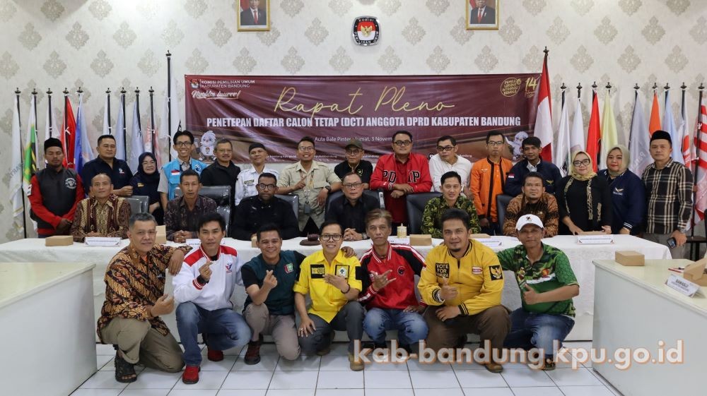 Melalui rapat pleno ini KPU Kabupaten Bandung menetapkan 802 orang Daftar Calon Tetap Anggota DPRD Kabupaten Bandung dalam Pemilu Tahun 2024 setelah dilakukan pencermatan rancangan DCT pada tahapan sebelumnya dengan rincian 505 laki-laki dan 297 Perempuan dengan Persentase Keterwakilan Perempuan sebesar 37,03% .