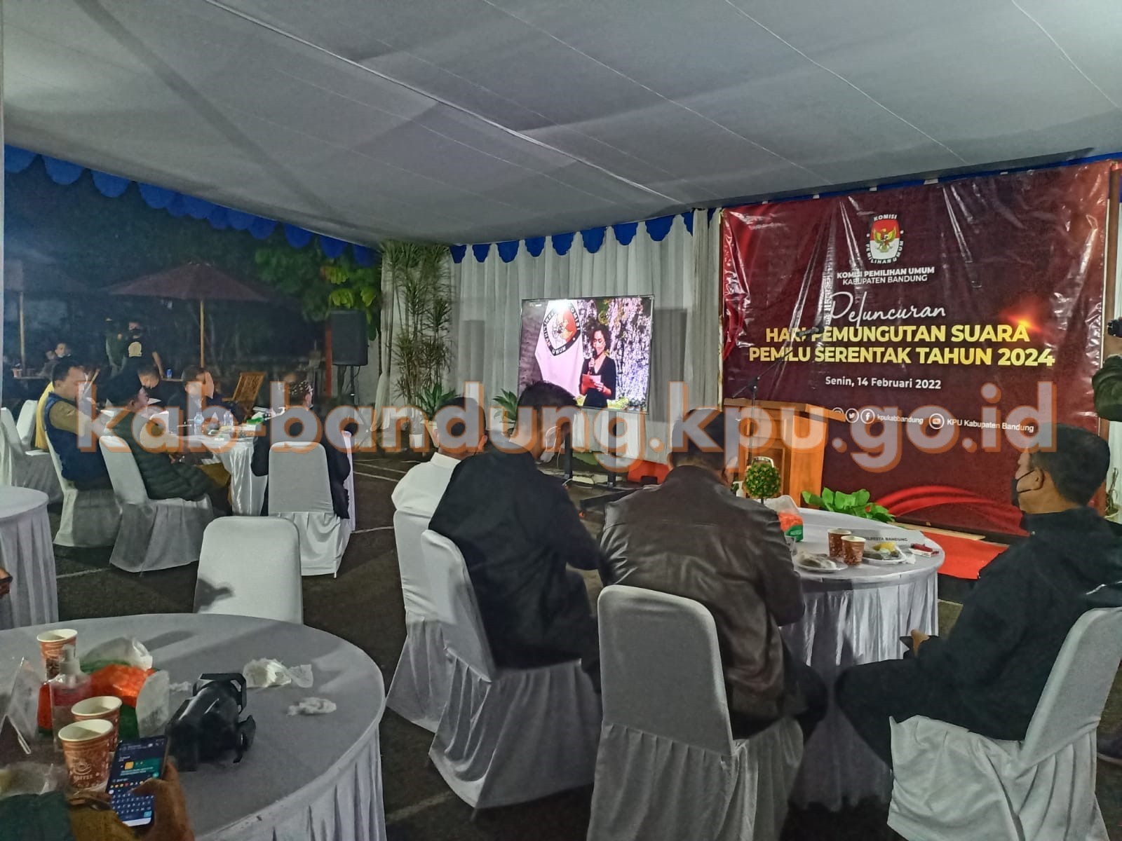 Soreang, kab-bandung.kpu.go.id – Bertepatan dengan 2 tahun atau 24 bulan menuju Pemilu Tahun 2024, KPU menyelenggarakan seremonial acara peluncuran hari pemungutan suara pada Pemilu Tahun 2024. Acara ini dilaksanakan secara hybrid (daring dan luring) serentak pada hari Senin, 14 Februari 2022 pukul 19.00 WIB. Seluruh KPU Provinsi KPU Kabupaten/Kota se-Indonesia, pengawas pemilu, peserta pemilu, dan Forum Komunikasi Pimpinan Daerah (Forkopimda) beserta para pemangku kepentingan sesuai dengan tingkatan wilayahnya hadir dan mengikuti seremonial secara daring di masing-masing kantor KPU.