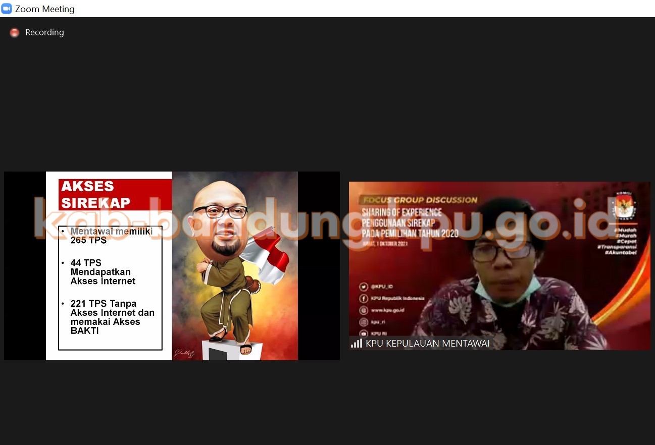 Bandung, kab-bandung.kpu.go.id – Jumat (01/10/2021), Komisi Pemilihan Umum Republik Indonesia (KPU RI) mengadakan Focus Group Discussion (FGD) yang dilaksanakan secara daring, bertemakan Sharing of Experience Penggunaan Sirekap pada Pemilihan Tahun 2020. Ketua KPU RI, Ilham Saputra, memberikan sambutannya sekaligus membuka kegiatan FGD secara resmi. Kegiatan ini dilaksanakan dalam rangka menerima masukan dan pengalaman saat menggunakan Sirekap pada pemilihan tahun lalu, baik permasalahan yang dihadapi maupun keberhasilan yang dirasakan dari penggunaan aplikasi tersebut, sehingga perbaikan-perbaikan terhadap Sirekap dapat dilakukan. Dari pengalaman tersebut, aplikasi Sirekap dapat diperkuat, disinergikan, dan dioptimalkan. Sirekap ini merupakan kunci dan salah satu core penyelenggara pemilu, ujar Ilham.