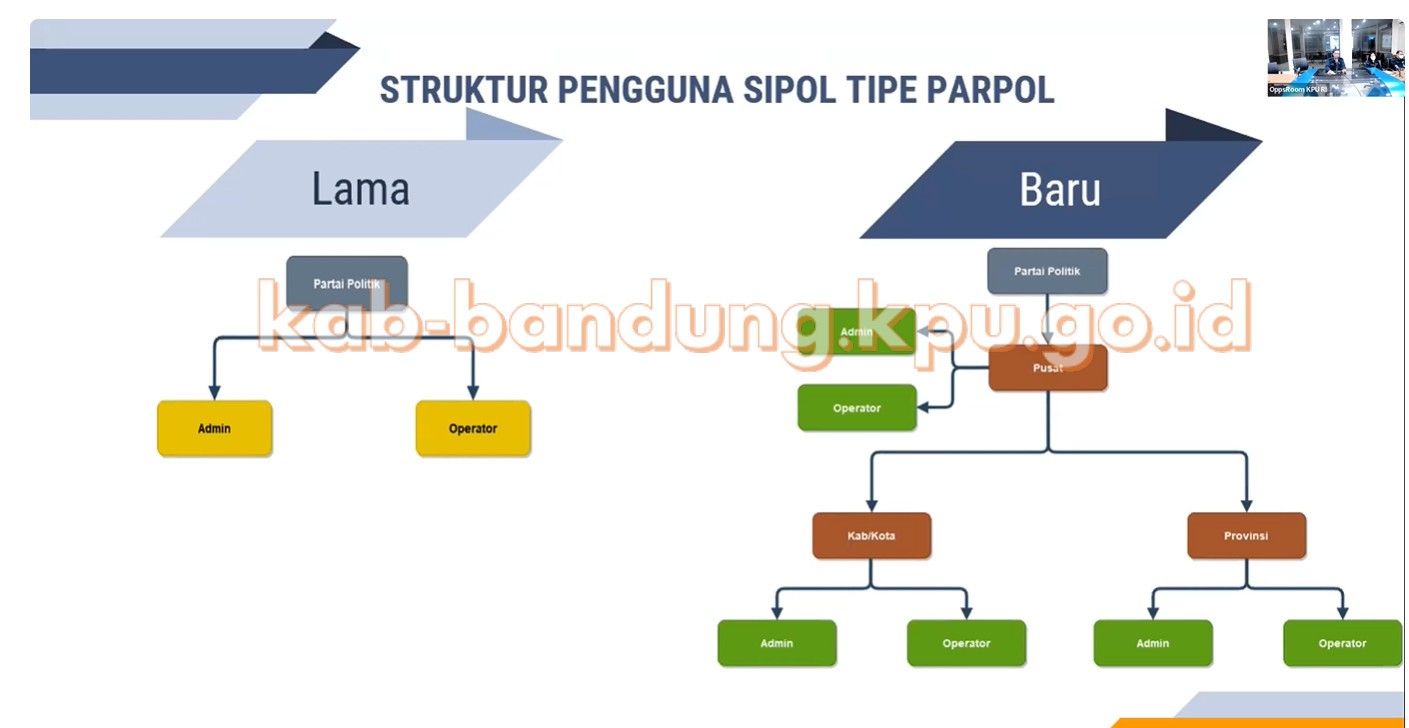 Bandung, kab-bandung.kpu.go.id – Selasa (5/7/22) KPU Republik Indonesia menyelenggarakan kegiatan Bimbingan Teknis penggunaan Aplikasi Sistem Informasi Partai Politik (SIPOL) untuk pengguna Partai Politik yang dihadiri oleh Ketua Divisi Teknis Penyelenggaraan KPU RI, Idham Holik, Deputi Bidang Dukungan Teknis KPU RI, Eberta Kawima, Kepala Biro Teknis Penyelenggaraan Pemilu Melgia Carolina Van Harling, Kepala Bagian Pengelolaan Peserta Pemilu KPU RI, Andi Krisna serta Plt Kapusdatin Andre Putra Hermawan yang bertindak sebagai narasumber. Kegiatan ini dilakukan secara daring yang diikuti oleh KPU Provinsi dan KIP Aceh divisi Teknis se Indonesia.