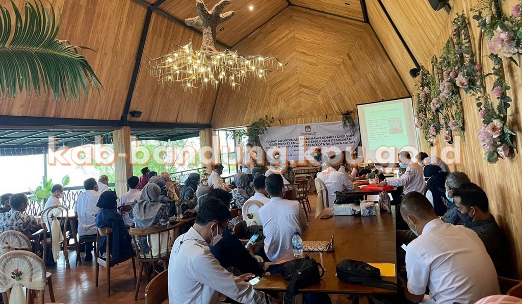 Bandung, kab-bandung.kpu.go.id – KPU Kabupaten Bandung mengikuti kegiatan Rapat Koordinasi Pembinaan dan Kompetensi Sumber Daya Manusia (SDM) bagi Penyelenggara Pemilu dan Pemilihan yang diselenggarakan KPU Provinsi Jawa Barat, Senin (20/12/2021). Kegiatan ini diikuti oleh KPU Kabupaten/Kota se-Jawa Barat yang diwakili oleh Anggota Divisi Sosialisasi, Pendidikan Pemilih, Partisipasi Masyarakat dan SDM serta Pejabat Struktural dimasing-masing satuan kerja. Bertindak sebagai pemateri pada acara ini yaitu Ketua KPU Provinsi Jawa Barat Periode 2013-2018, Yayat Hidayat.