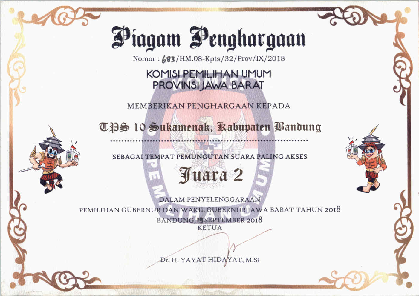 1. Terbaik Pertama TPS (Tempat Pemungutan Suara) Akses dalam Penyelenggaraan Pemilihan Gubernur dan Wakil Gubernur Jawa Barat Tahun 2018