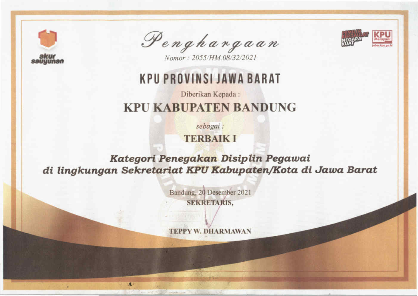 2. Terbaik Pertama Penegakan Disiplin Pegawai di Lingkungan Sekretariat KPU Kabupaten/Kota