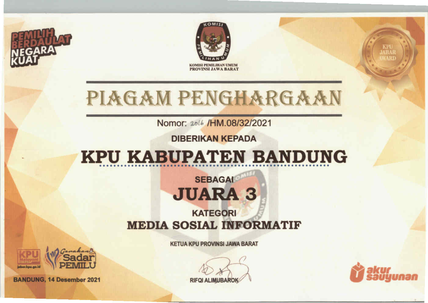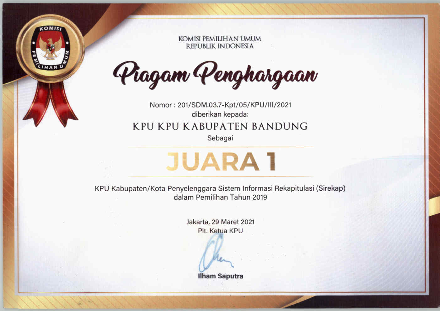 3. Terbaik Pertama Penyelenggara SIREKAP (Sistem Informasi Rekapitulasi) Pemilihan Tahun 2019