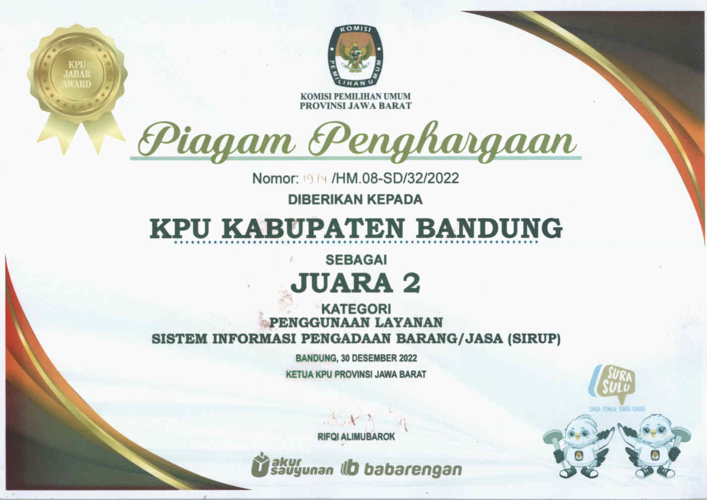 6. Terbaik Kedua Penggunaan Layanan Sistem Informasi Pengadaan Barang/Jasa (SIRUP)