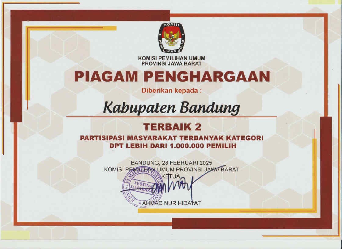 3. Terbaik Kedua Partisipasi Masyarakat Terbanyak Kategori DPT Lebih Dari 1.000.000 Pemilih